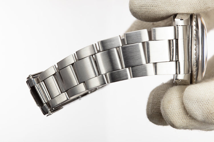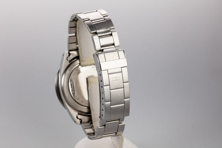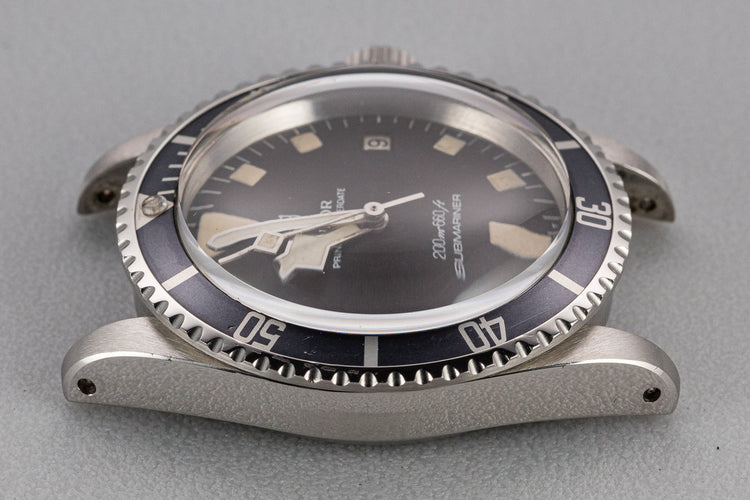 Excellent case that has recently been polsih3ed and shows light wear from use. The black bezel insert has faded to dark grey tone and shows light wear from use. Excellent 9315 folded link Oyster bracelet with 11 links, dive extension, 380 end links. The clasp is stamped with a G (1982) date code.