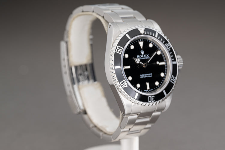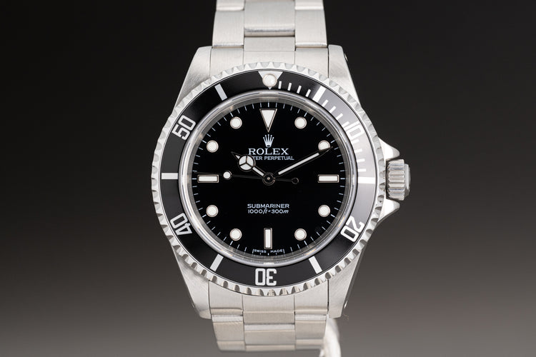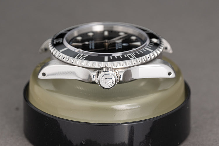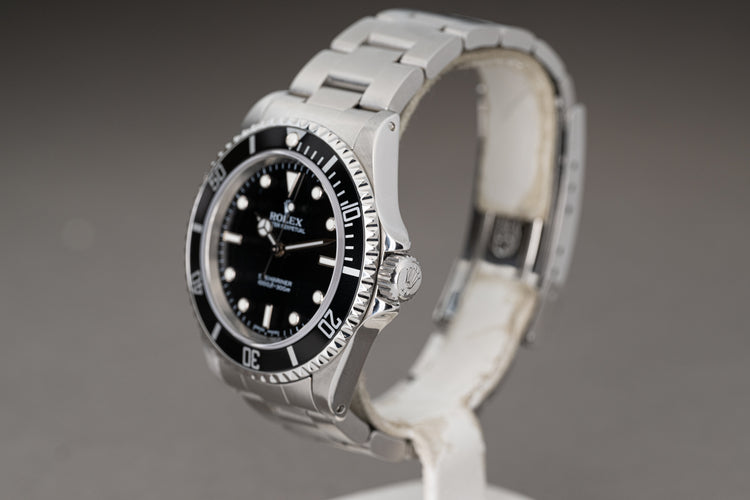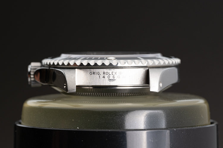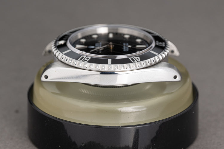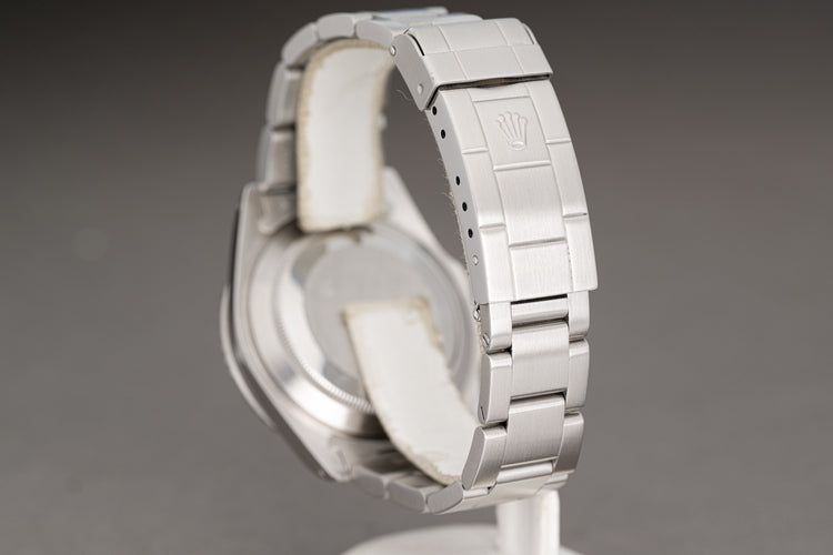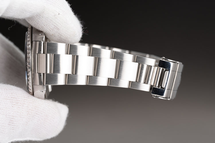 Excellent case that has been previously polished and shows light wear. Excellent black bezel insert. Excellent 93150 bracelet with 11 links 501b end links, D4 (2001) clasp code, dive extension and flip lock clasp.