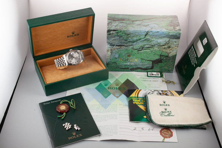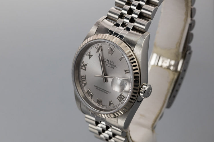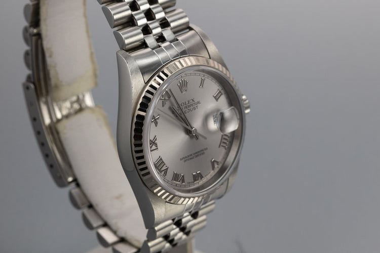 2002 Rolex DateJust 16234 Rhodium Roman Numeral Dial with Box and Papers