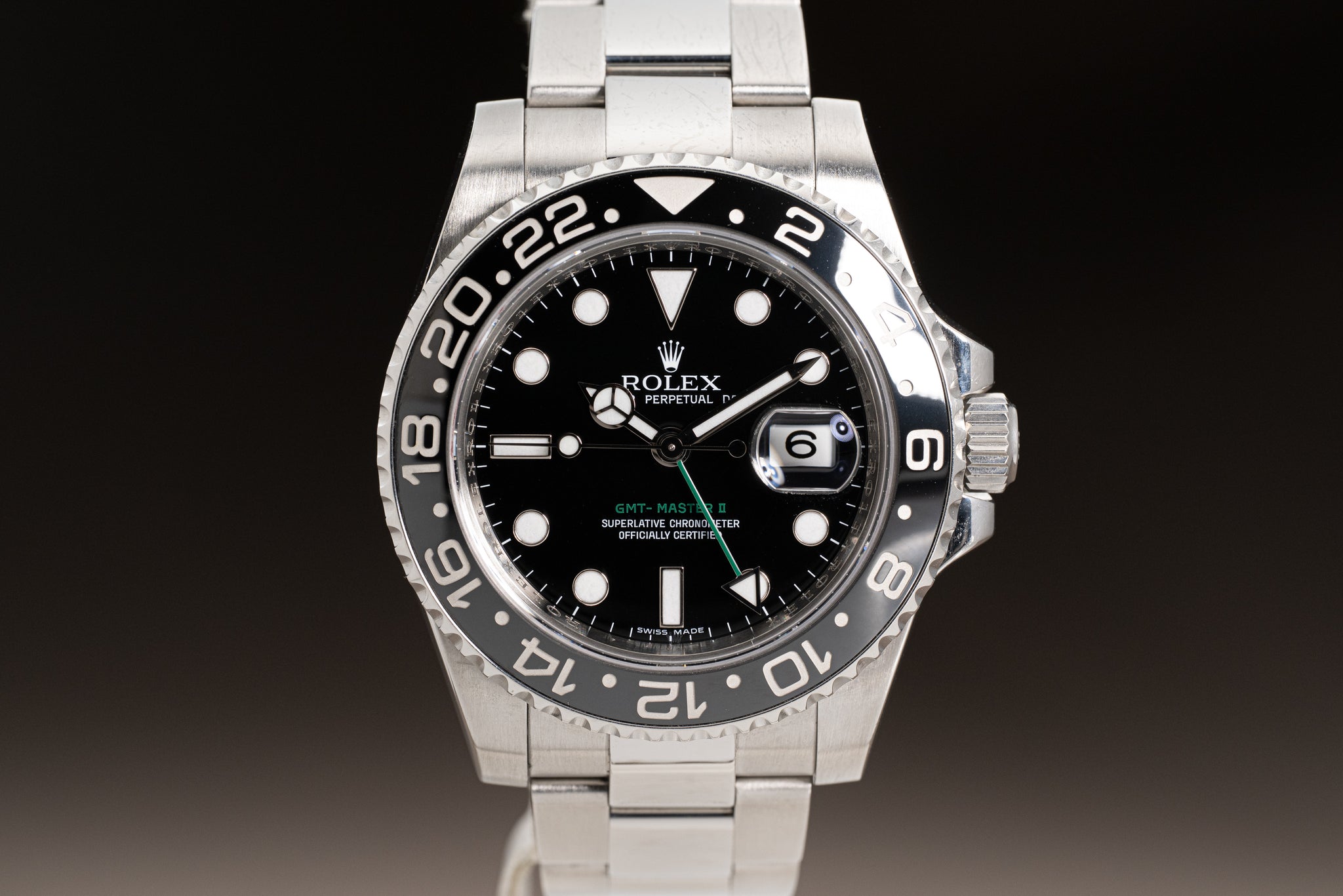 2009 Rolex GMT Master II 116710 Black Index Dial Box, Booklets, Card, Hangtag & Chrono Tag