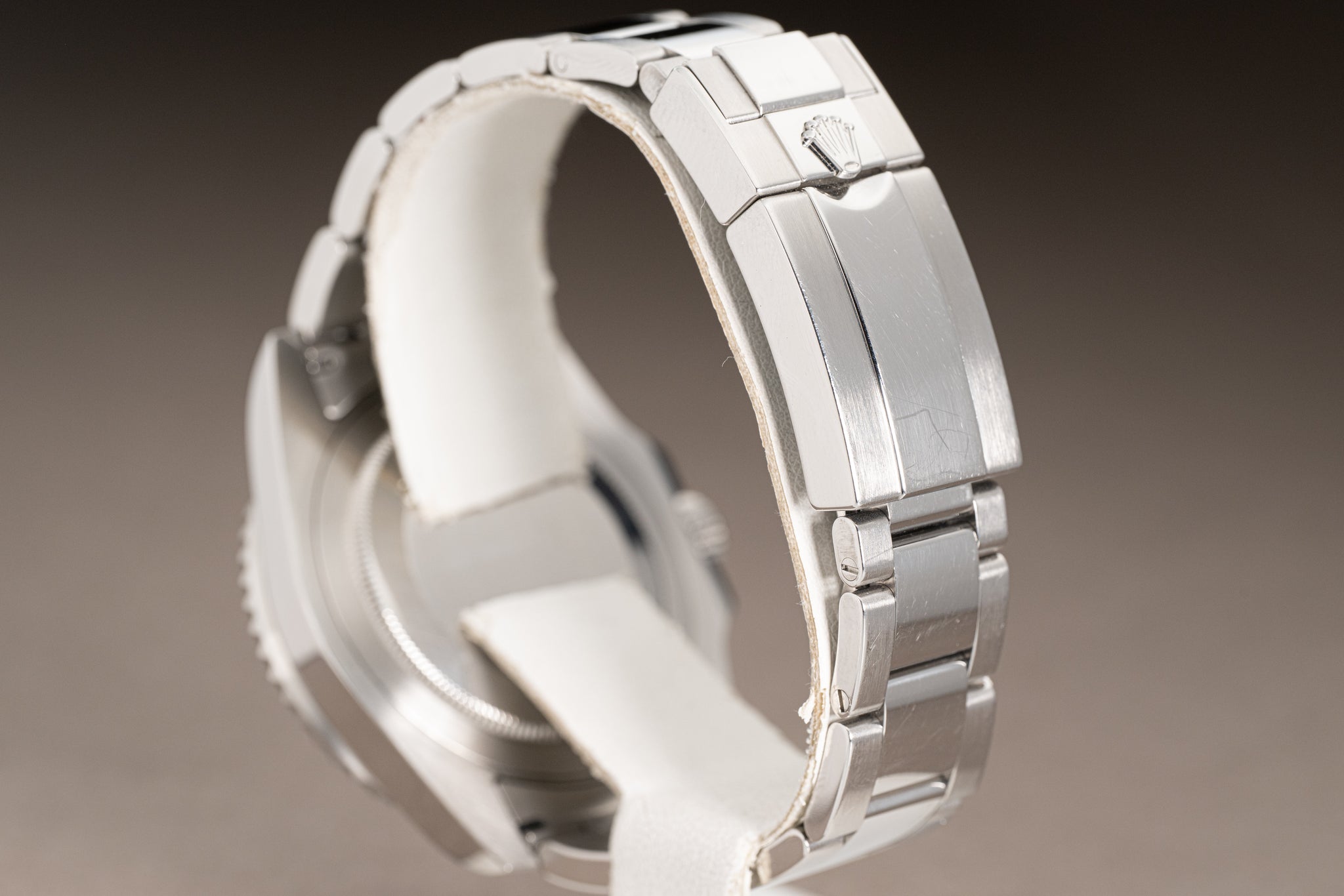 Excellent case which shows very light wear from use. Excellent 24hr bezel. Excellent bracelet with 10.5 links, solid SEL end links, easy link extension and flip lock clasp.